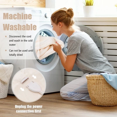 - Simple Maintenance: The maintenance of this heated blanket is effortless and time-saving. The blanket is available for both hand wash and machine wash. Note: unplug the power connection and disconnect the cord before washing. Please wash in the cold water. And the washed blanket can not be used until totally dried.